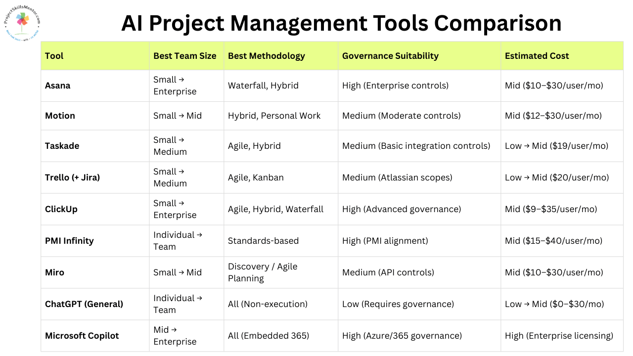 If you are a new project manager building your toolkit — or an experienced manager evaluating new options — the challenge is no longer whether AI tools exist. Virtually all project management tools have some level of AI integration. The question really is, what is the more pragmatic option: using fit-for-purpose or enterprise-wide AI?