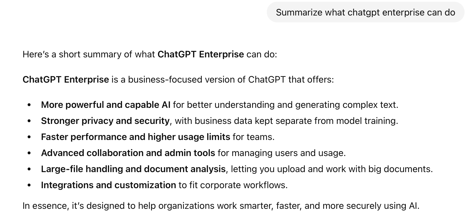 Context-aware assistance. When connected to enterprise data, Copilot can reference internal documents and workflows.