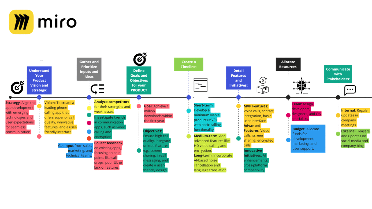 Template-driven structure. Miro offers templates for Agile ceremonies, Kanban boards, timelines, and product roadmaps.