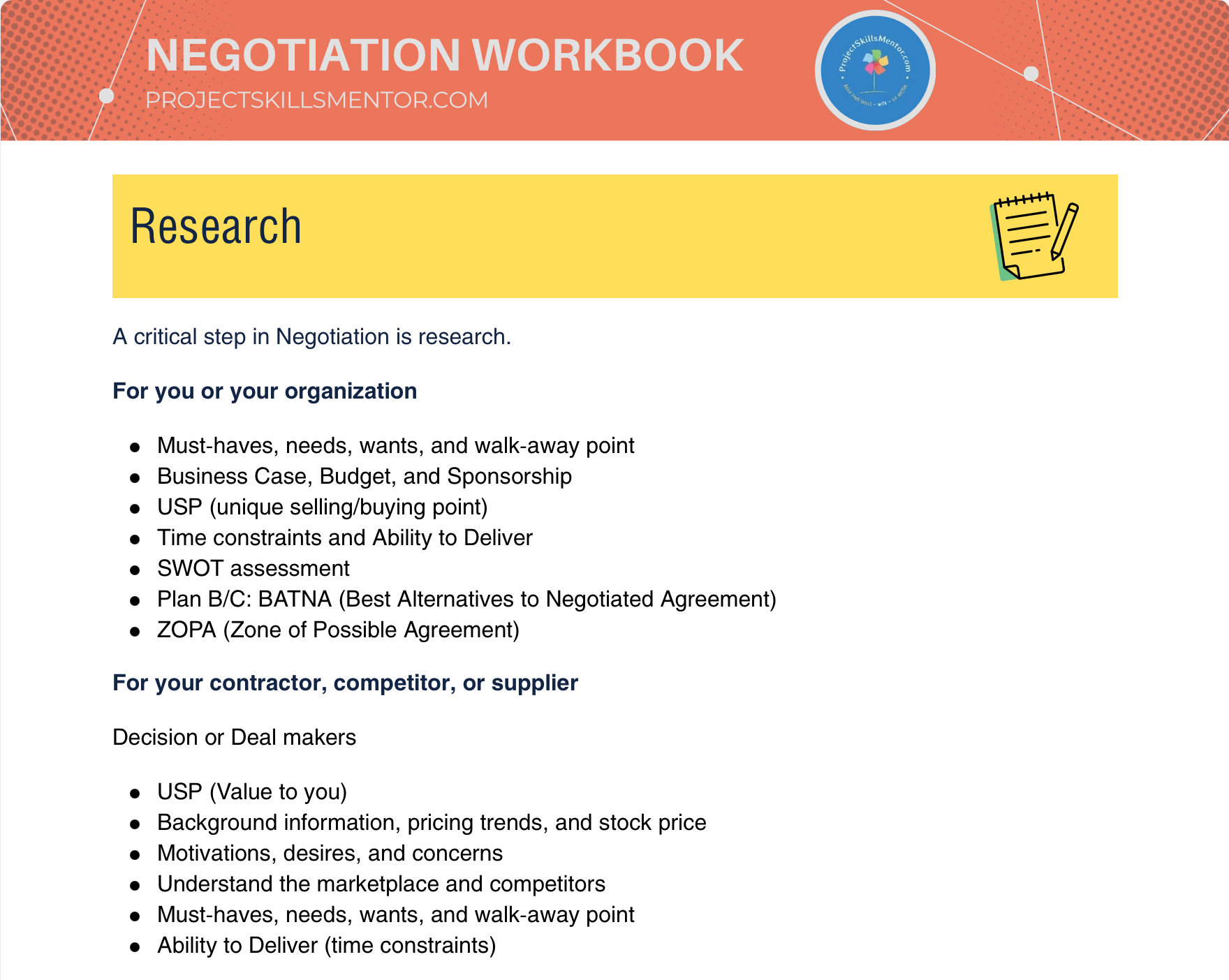 If you want the foundational principles and coaching techniques for building negotiation skills, you can read my earlier guide here: How to Coach Negotiation Skills – ProjectSkillsMentor.com. This article focuses on how to apply that knowledge using the workbook as your secret weapon.
