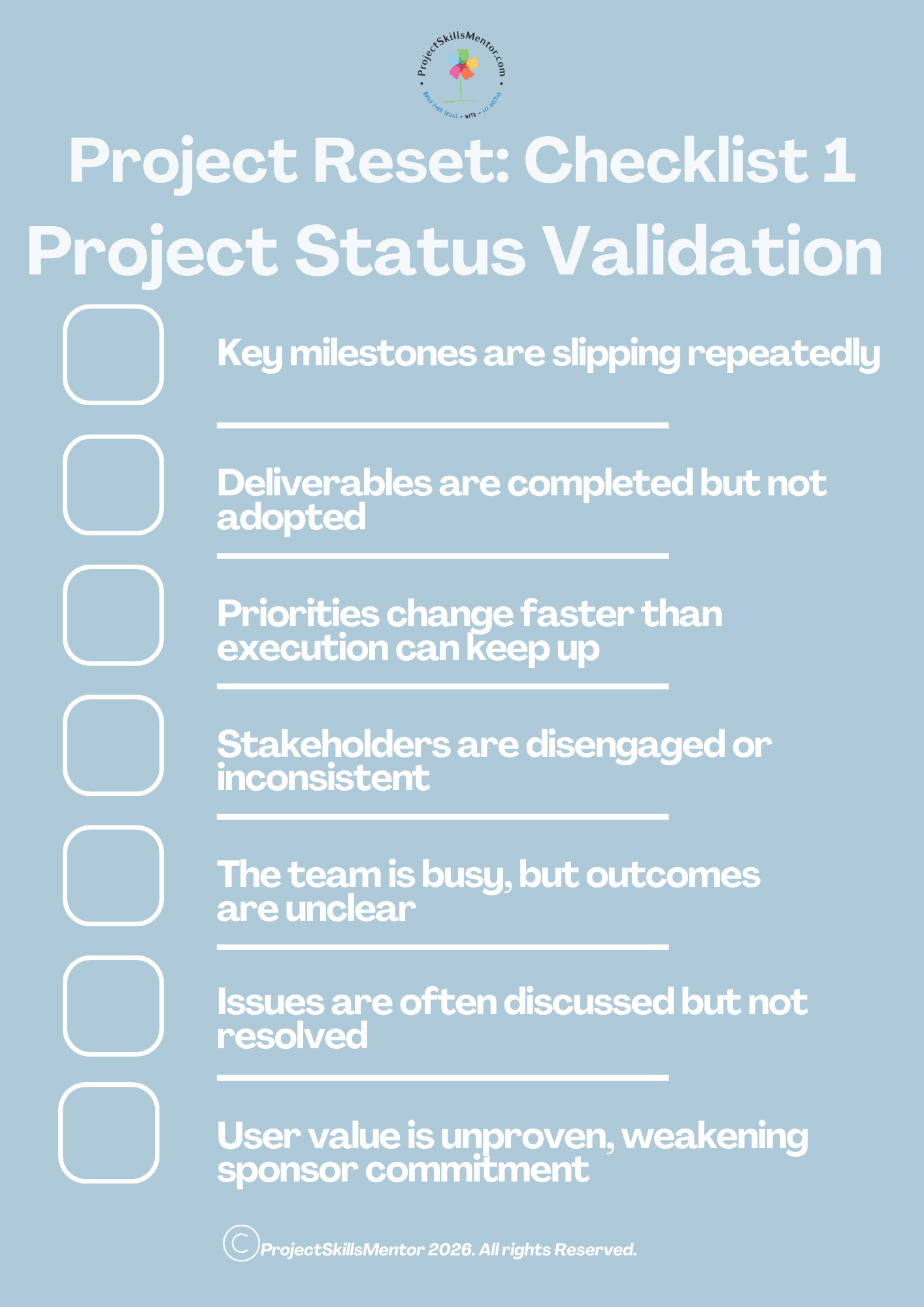 Use this checklist to determine whether it’s time for a serious project reset (and maybe consider a “hold” or “stop”).